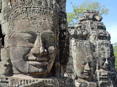 Ta Prohm temple; it is a temple where tree roots have invaded the roofs and walls of the temple. Ta Prohm is one of the most atmospheric temples of Angkor. The Hollywood blockbuster 'Tomb Raider' (with Angelina Jolie) has made the temple famous. Once you have covered the site, you will be surprised by the unique atmosphere created by these temples half covered with trees and vegetation.Bayon